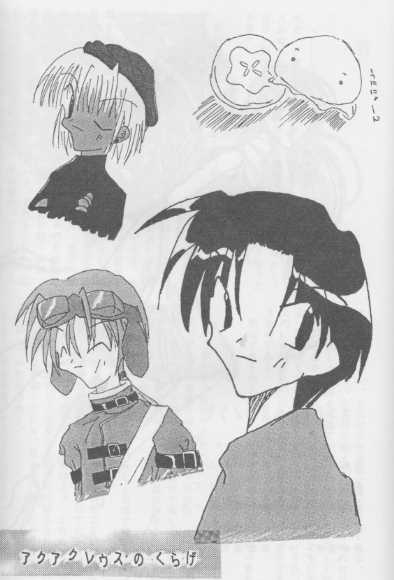 目測十七歳程度の青年は、ライトグリーンの長い髪をうなじのあたりで茶色の紐で結び、緑のコートのような服にうすいベージュのバックを左肩に下げている。ニッコリ目をつぶっているので、目の色は分からない。額には、何に使うのか、ゴーグルを付けている。